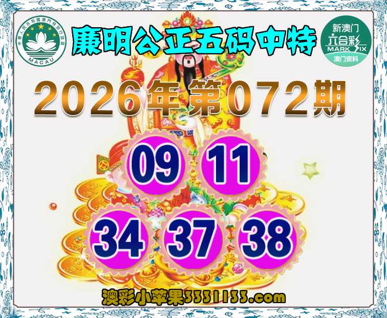 072期:〖廉明公正〗 五码中特【09.11.34.37.38】开:46
