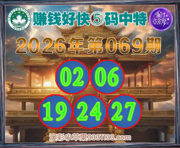 069期:〖赚钱好快〗 ⑤码中特【02.06.19.24.27】开:24