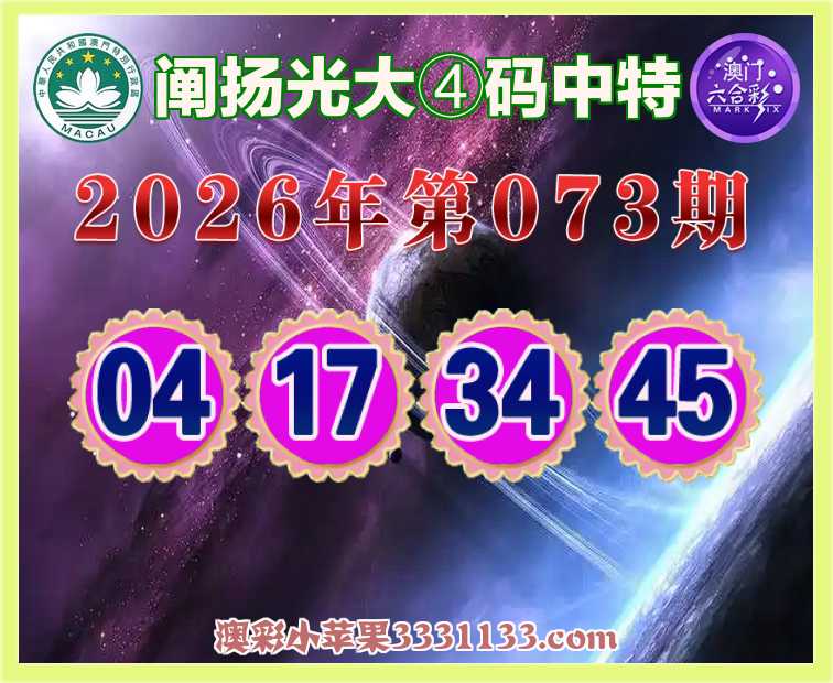 073期: 『阐扬光大』 ④码中特【04.17.34.45】开:34
