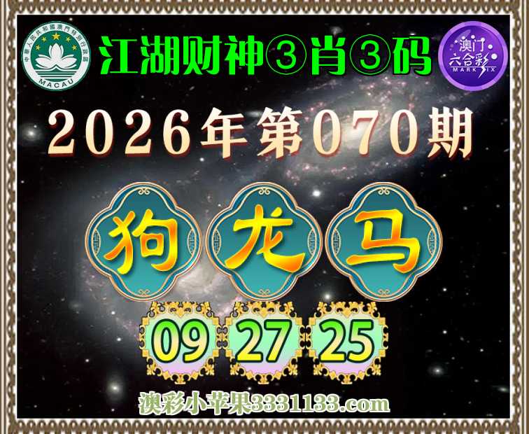 070期:《江湖财神》 ③肖③码【狗龙】【09.27.25】开:马25